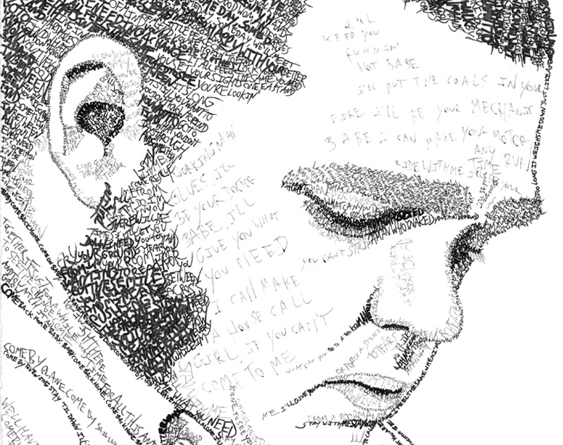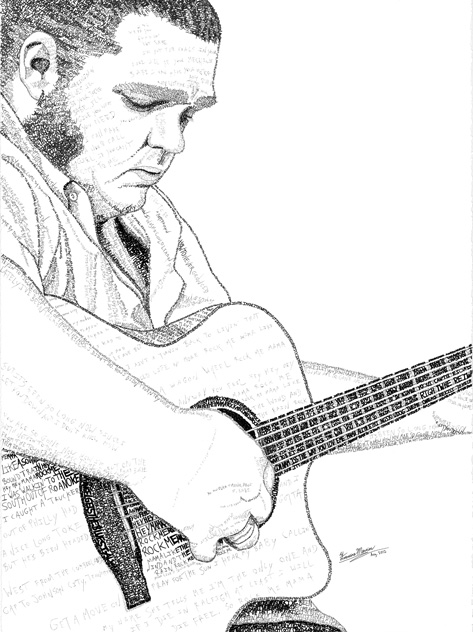 Matt Andersen is a blues musician from New Brunswick, Canada. This ink drawing uses words to make up the lines and shading.